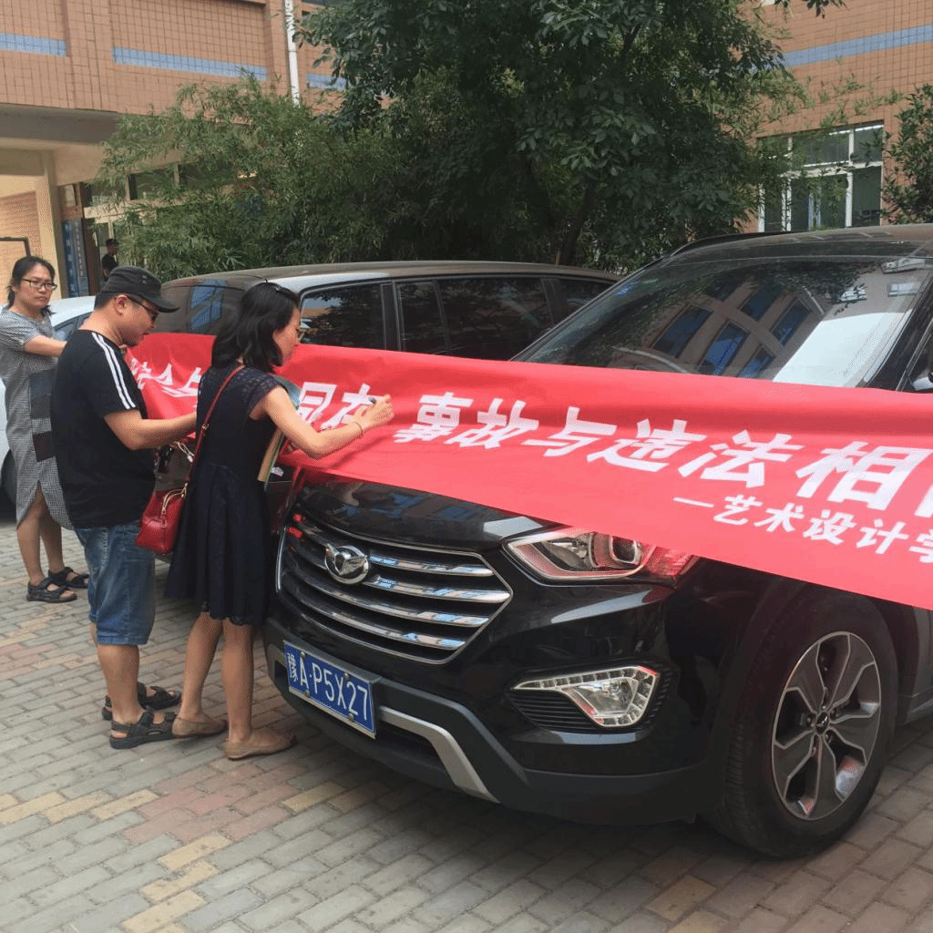 活动现场,汤喜辉副经理宣传了在出行时应遵守的基本交通法规,告诫大家作为交通参与者要自觉遵守交通法规 ,并在宣传横幅上签下名字,其它教师相继在横幅上签字。视觉传达设计教研室白晨老师分享了参与“文明交通进校园”行动的心得体会,并宣读了“文明交通从我行”倡议书,表达了“争做文明交通守交规”的决心。