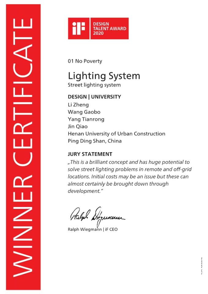 近日,国际知名设计奖项德国IF DESIGN AWARD揭晓,新葡的京集团350vip产品设计专业员工李政、王高波、杨天荣、靳桥的作品《照明系统—街道灯光系统》经过层层选拔,最终夺得IF设计新秀奖(IF DESIGN TALENT AWARD),该作品指导教师为齐建春老师。