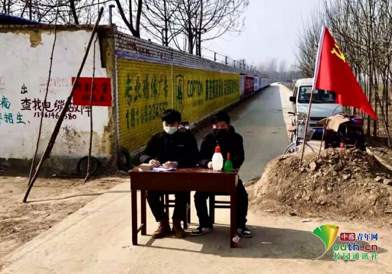 线上视频采访,述青春执着坚守。在采访中,2017级视觉传达设计专业的钟立鸿表示,疫情爆发以来,每天都在关注疫情动态,看到无数中国人民奋斗在疫情防控一线,为什么不能尽一份自己的力量。听到阳谷县高王庙镇钟楼村广播家乡缺少志愿者,没想那么多,第一时间报了名。“我不怕危险,防护知识我都懂,我是党员,我更要尽一份自己的力量。”稚嫩的脸庞,坚定的话语,村主任同意了钟立鸿的请求,加入到钟楼村疫情防控志愿工作,在村设防疫卡口,劝返过往车辆及流动人口劝导,入户调查摸底村民生活,物资配送及体温检测,村内人口集中的场所进行消毒及疫情防御知识宣传等工作。