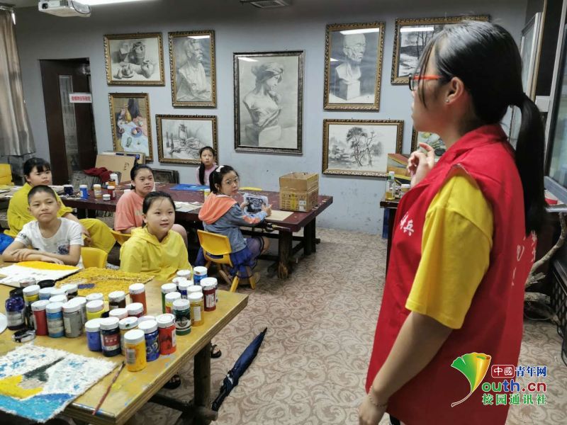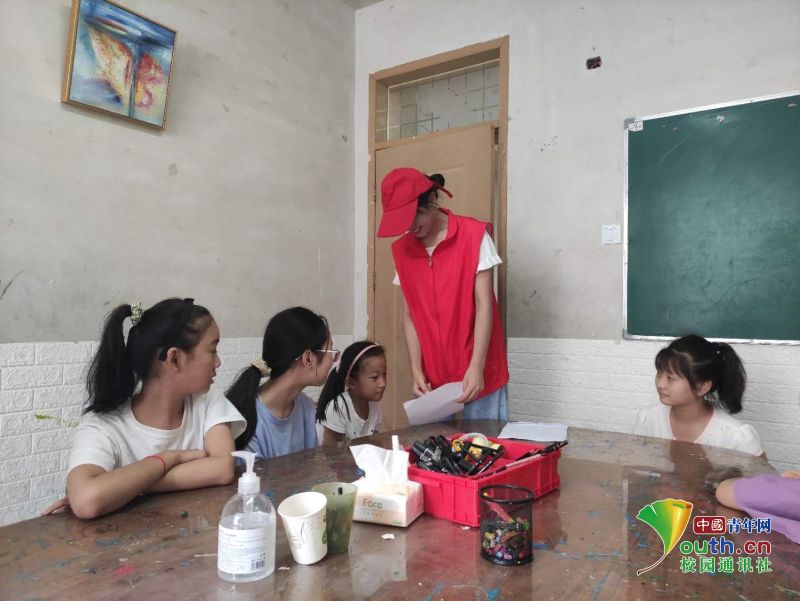 图为团队成员给孩子进行普及交通法律法规宣传。