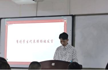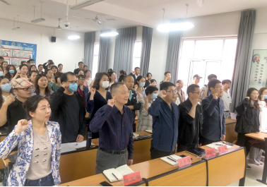 本次活动包含六个环节:省吾身、唱歌曲、学模范、诵经典、谈感悟、送吉祥,活动伊始,主持人以三个问题引导大家“省吾身”,即“我们如何在自己的岗位上发扬爱国精神?在工作或学习过程中,有哪些需要传承的爱国品质?谈到爱国,我们可以为祖国做些什么?”;在唱歌曲环节,全体起立合唱《歌唱祖国》,歌声嘹亮,气氛热烈;在学模范环节,党总支副书记李阳为大家讲述了新冠疫情爆发以来,以钟南山院士为代表的医护工作者与病毒博弈的英勇事迹,展现了一腔热血爱国的赤诚之情。在谈感悟环节,辅导员李源雨老师结合全国上下抗击疫情期间涌现的鲜活事迹,号召大家不忘初心、牢记使命,强化忧患意识和使命意识,勇担复兴大任,争做时代新人;员工代表候杨迪也向大家分享了自己的感悟;随后主持人带领全体师生诵读道德承诺书并进行宣誓;在送吉祥环节,马步伟书记向大家赠送道德讲堂纪念物。