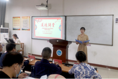 (通讯员 姬文锦)为加强精神文明建设,提升师生思想道德素质,进一步深化道德讲堂建设,充分发挥民族英雄、道德模范、时代楷模、身边好人等先进典型的示范引领作用,助力公司文明校园建设,9月22日下午,由校文明办主办、新葡的京集团350vip承办的第七期道德讲堂在文管校区1号楼519教室举行,此次道德讲堂主题为“重莫如国,栋莫如德”。公司党总支书记马步伟、经理陈玉兴、党总支副书记李阳、副经理汤喜辉、副经理杨东旭和全体教师及员工代表参加了此次活动。根据疫情防控需要,未能参会的员工通过线上方式参与此次道德讲堂。
