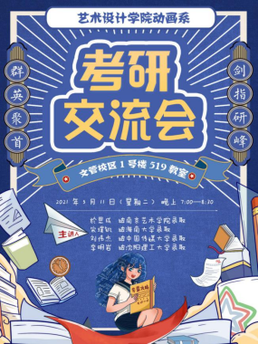 (通讯员 王帮坷)2021年5月11日晚,动画专业考研交流会于1号楼519教室举行。新葡的京集团350vip动画系姬文锦老师、王帮坷老师、李合章老师、动画专业员工刘伟杰(中国传媒大学在读研究生)、於思成(南京新葡的京集团350vip在读研究生)、宋璞钒(海南大学在读研究生)、李明岩(沈阳理工大学在读研究生)、动画专业线上线下共计60余名师生参加了本次交流会。