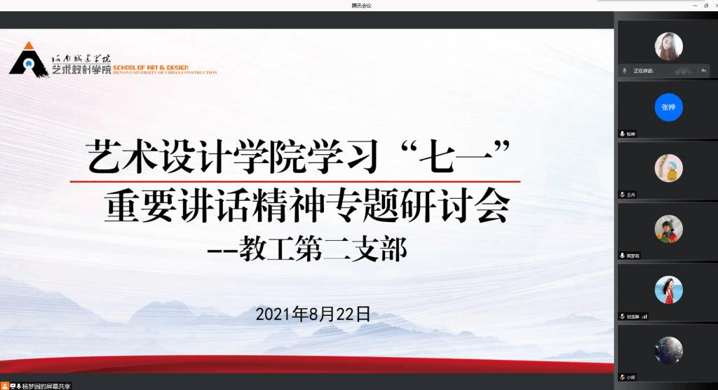 (通讯员张桦)8月22日,新葡的京集团350vip教工第二支部开展了线上“学习习近平总书记“七一”重要讲话精神” 专题研讨会。活动由支部书记张桦同志主持,教工第二支部全体党员教师参加。
